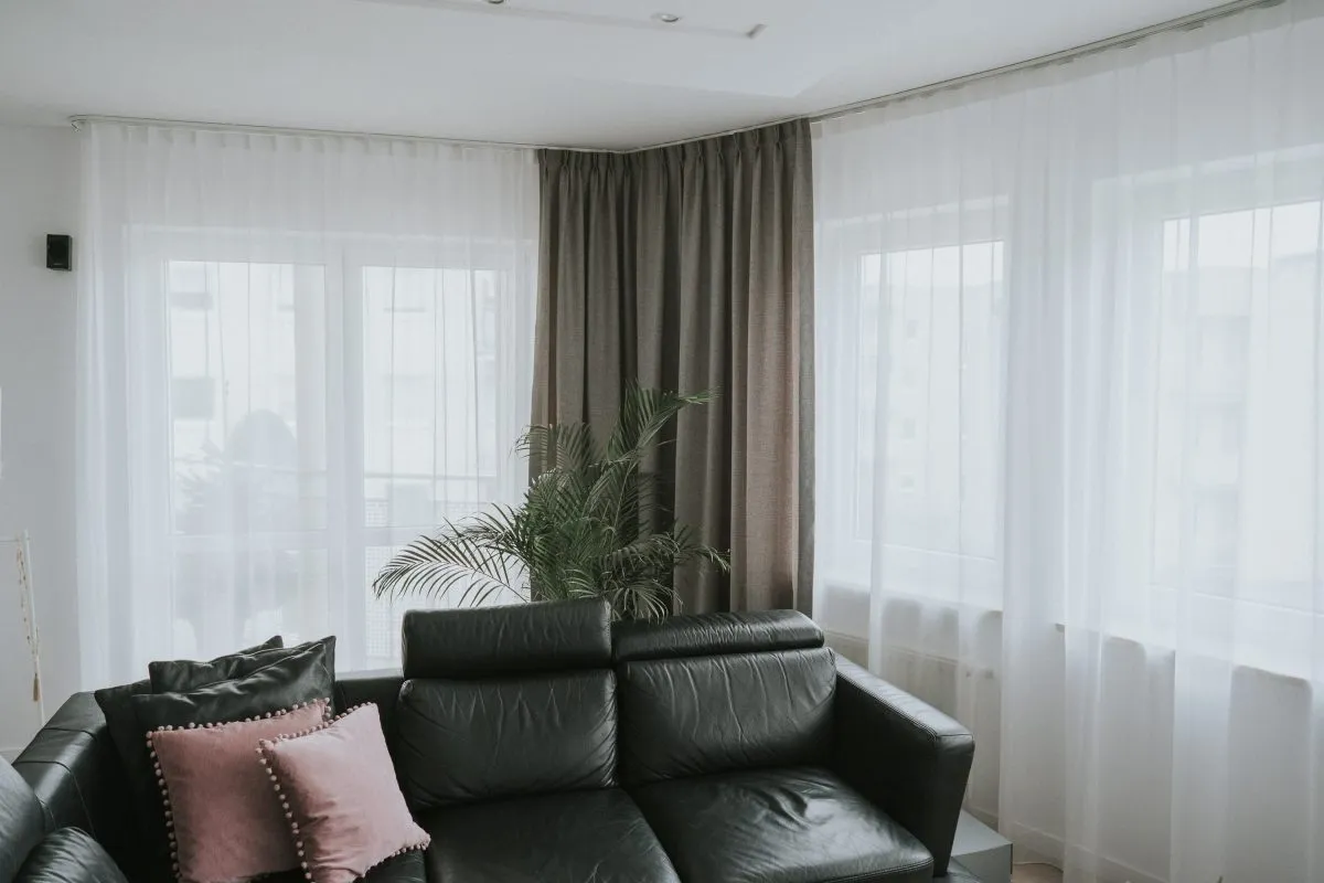 Wzory zasłon, które wzbogacą wystrój z czarną kanapą